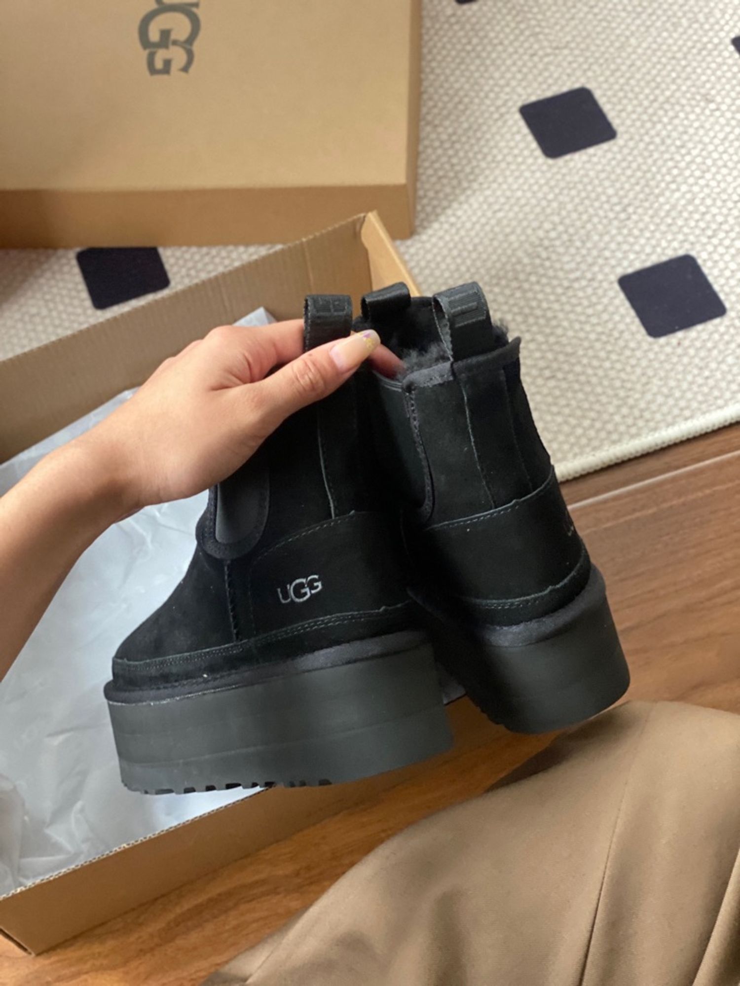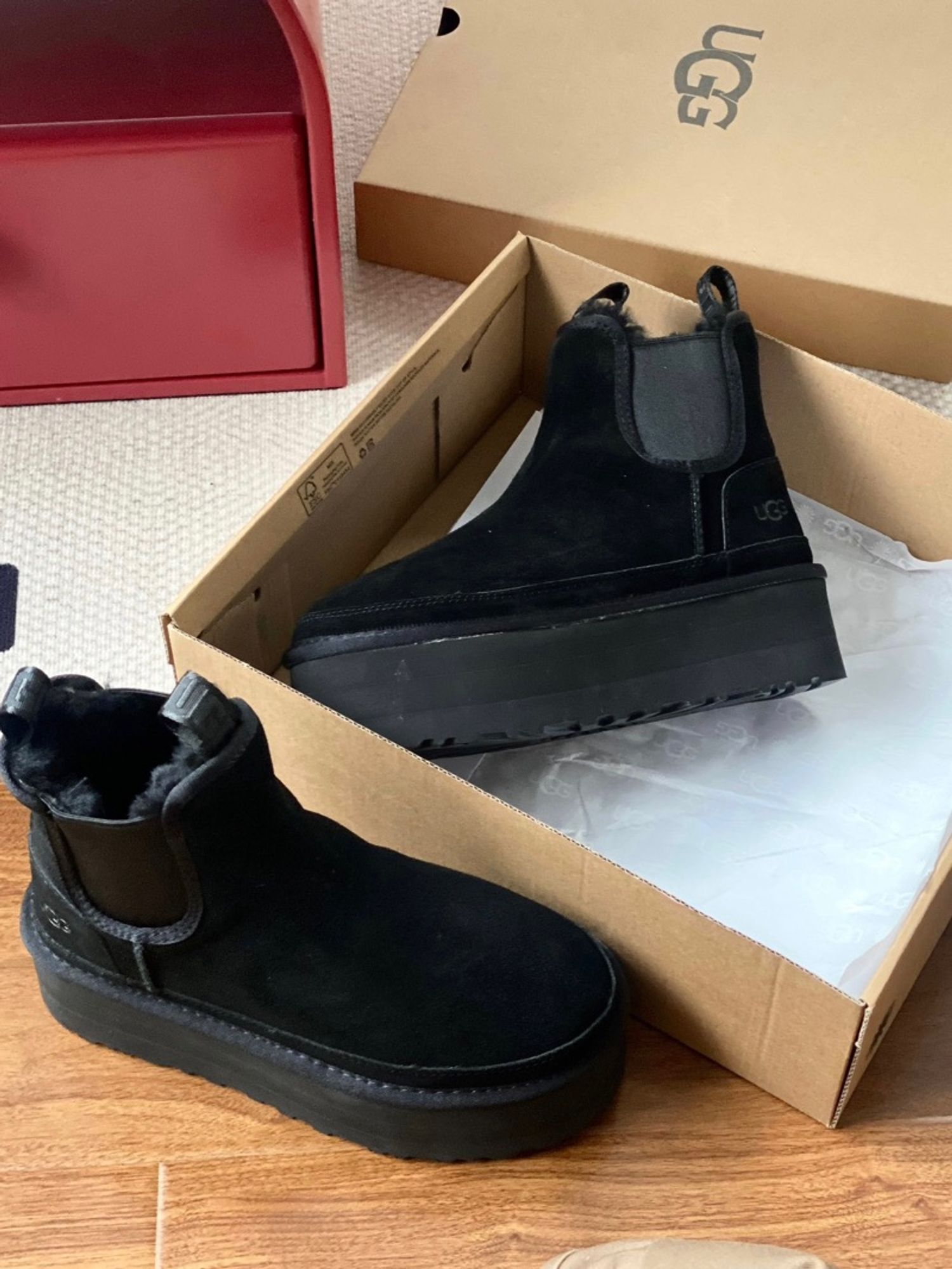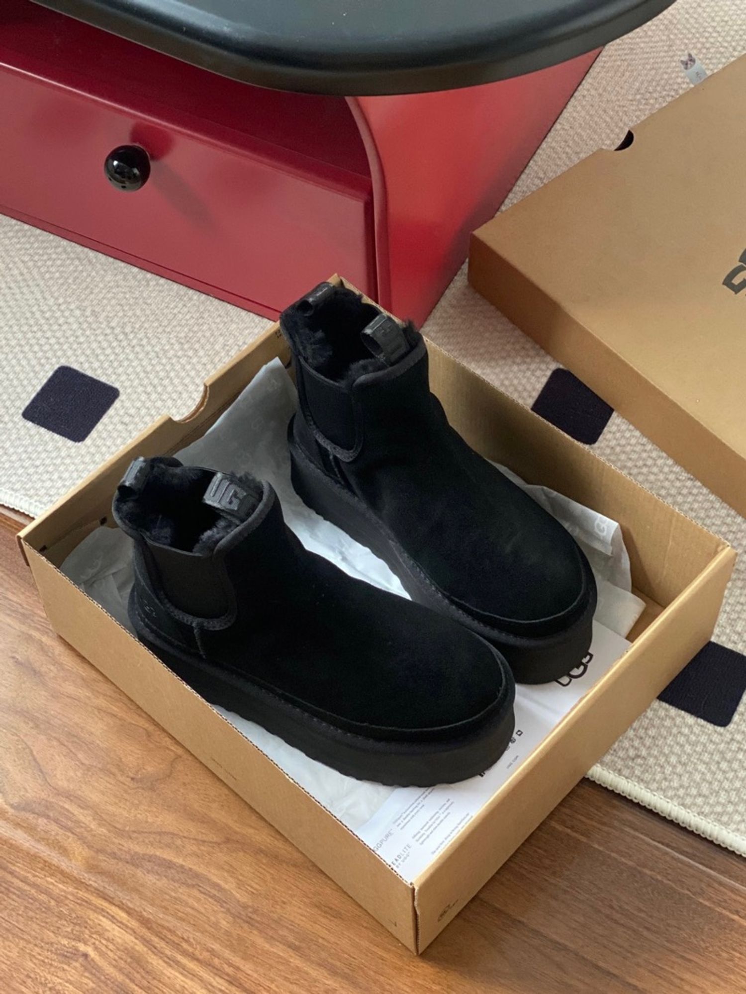 𝐔𝐆𝐆 өвлийн зузаан ултай Chelsea богино гутал 💫Дээд: арьс 💫Дотоод доторлогоо: цэвэр ноос 💫Ул: EVA хөөсөн наранцэцгийн ул 💫Улны зузаан: 5см Өмсөх, тайлахад хялбар.